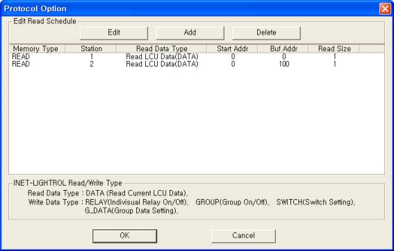 <±×¸² 3> INET Lightrol Åë½Å µå¶óÀ̹öÀÇ Àб⠼³Á¤ READ Ãß°¡/ÆíÁý ´ëÈ»óÀÚÀÇ ¿¹