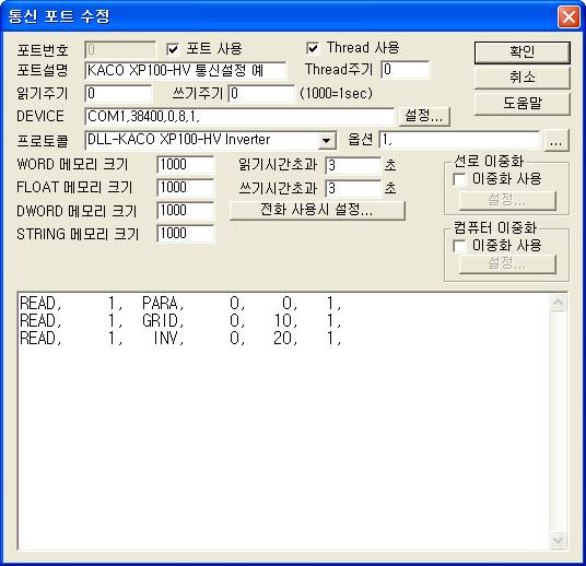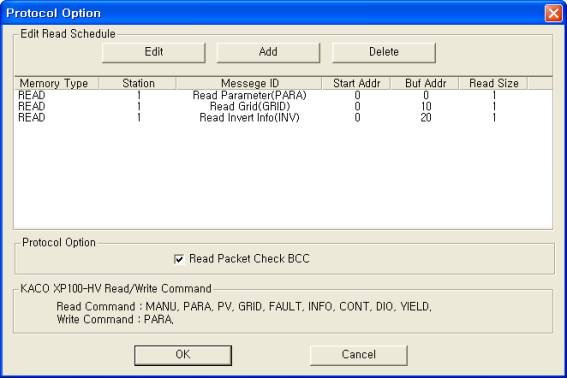 <±×¸² 3> KACO XP100-HV Inverter Åë½Å µå¶óÀ̹öÀÇ Àб⠼³Á¤ READ Ãß°¡/ÆíÁý ´ëÈ»óÀÚÀÇ ¿¹