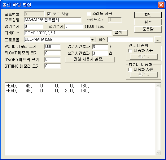MAHA1256 ÄÁÆ®·Ñ·¯ÀÇ DEVICE ¼³Á¤Àº ¿¬°áµÈ Åë½ÅÆ÷Æ®, ¼Óµµ(19200 BPS), PARITY BIT(0), DATA BIT( 8), STOP BIT(1)·Î °íÁ¤ µîÀ» ÀÔ·ÂÇÑ´Ù.