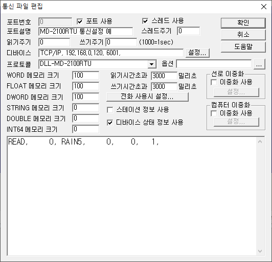 <±×¸² 1>Àº MD-2100RTU µå¶óÀ̺ê·Î Åë½Å¼³Á¤À» ÇÑ ¿¹ÀÌ´Ù.