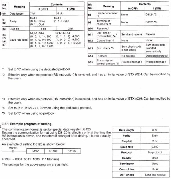 Baud rate 19200, Parity none, Data bit 8, Stop 1 ·Î »ç¿ëÇÏ°í ½ÍÀ» ¶§´Â MOV H6891 D8120 À» »ç¿ëÇϰí