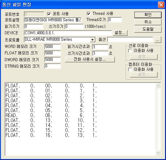 ¿¹5) Station : 0 Address : 0150 Extra1 : 00, EXTRA2 : ºóÄÀ¸·Î ¼³Á¤ÇÏ°í ¾Æ³¯·Î±× Ãâ·ÂÀ» Çϸé 0¹ø MIRAE MR8000 Series ÀÇ PV °ªÀ» ÀÐ¾î¼ 150 ¹øÁö WORD/FLOAT/DWORD ¸Þ¸ð¸®¿¡ ÀúÀåÇÑ´Ù.