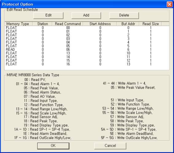 <±×¸² 3> MIRAE MR8000 Seriesµå¶óÀ̺êÀÇ Åë½Å Àб⠼³Á¤ READ Ãß°¡/ÆíÁý ´ëÈ»óÀÚÀÇ ¿¹