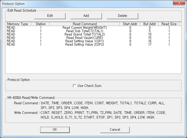 | <±×¸² 3> MI-4200A Digital Weighing Indicator µå¶óÀ̹öÀÇ Åë½Å Àб⠼³Á¤ Ãß°¡/ÆíÁý ´ëÈ»óÀÚÀÇ ¿¹ |