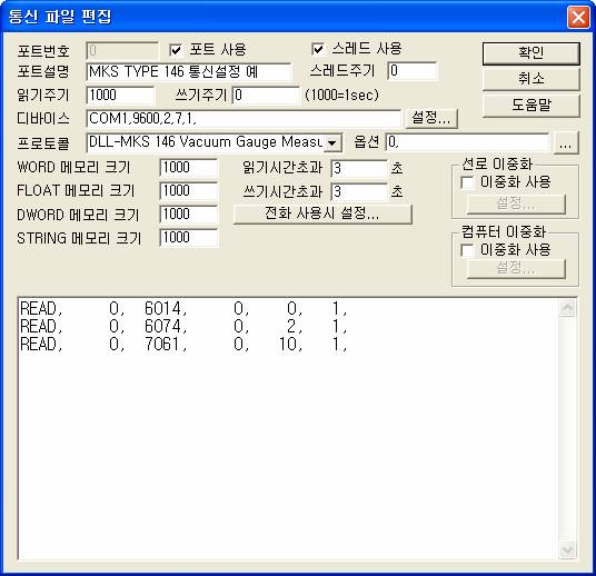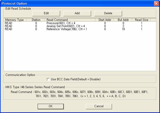 <±×¸² 3> MKS 146 Vacuum Gauge Measurement Åë½Å µå¶óÀ̹öÀÇ Àб⠼³Á¤ READ Ãß°¡/ÆíÁý ´ëÈ»óÀÚÀÇ ¿¹