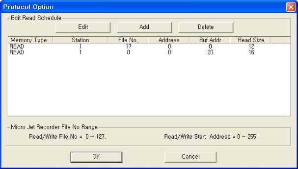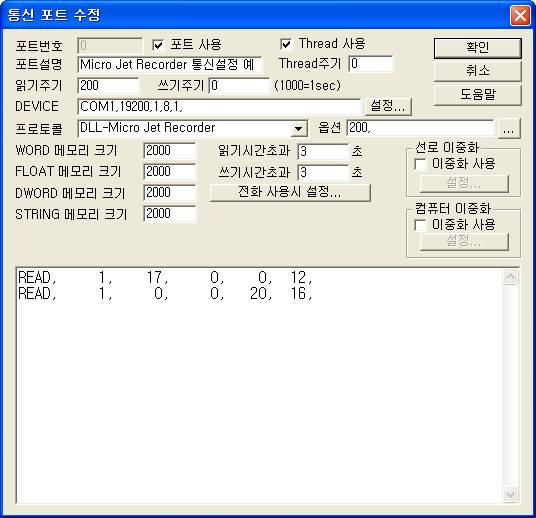 <±×¸² 3> Micro Jet Recorder Åë½Å µå¶óÀ̹öÀÇ Àб⠼³Á¤ READ Ãß°¡/ÆíÁý ´ëÈ»óÀÚÀÇ ¿¹