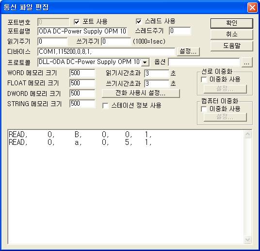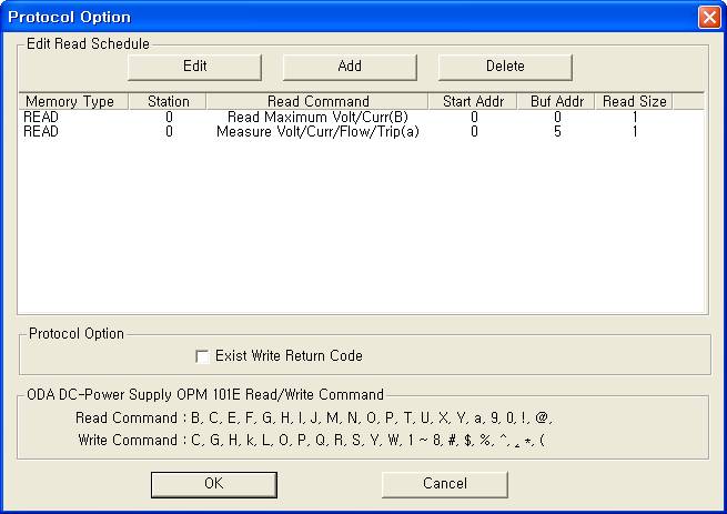<±×¸² 3> ODA DC-Power Supply OPM 101E µå¶óÀ̹öÀÇ Åë½Å Àб⠼³Á¤ Ãß°¡/ÆíÁý ´ëÈ»óÀÚÀÇ ¿¹