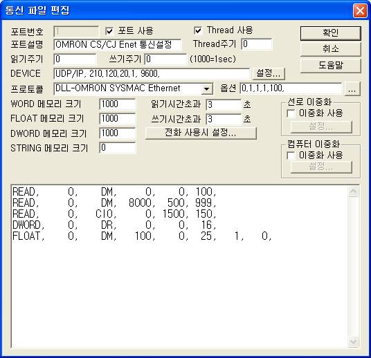 <±×¸² 1> OMRON SYSMAC Ethernet Åë½Å µå¶óÀ̺êÀÇ Åë½ÅÆÄÀÏ ÆíÁý ¿¹
