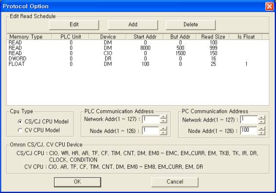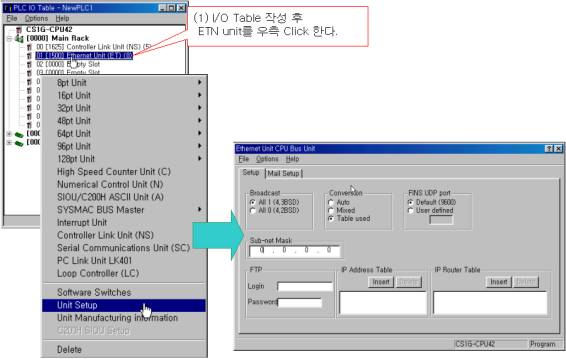 ¶ÇÇÑ <±×¸² 2>¿¡¼ CPU Á¾·ù ( 0 = CS/CJ, 1 = CV ), PLC Network ¹øÁö( 1 ~ 127 ), PLC Node ¹øÁö ( 1 ~ 126 ), ÄÄÇ»ÅÍ Network ¹øÁö ( 1 ~ 127 ), ÄÄÇ»ÅÍ Node ¹øÁö ( 1 ~ 126 )¸¦ ¼³Á¤ÇÒ ¼ö ÀÖ´Ù.
