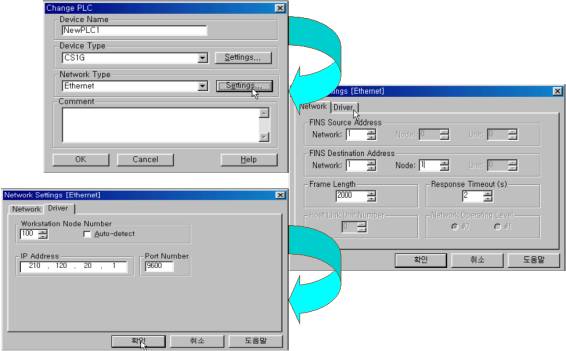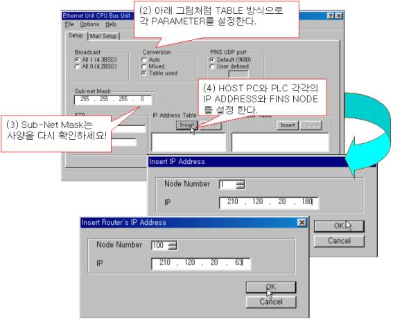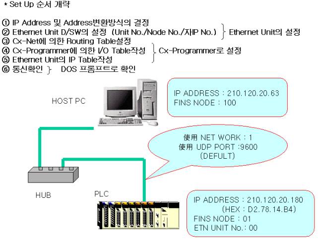 OMRON PLC·Î Ethernet Åë½ÅÀ» À§Çؼ´Â ´ÙÀ½°ú °°Àº ¿ä¼ÒµéÀ» ¼³Á¤ÇØ¾ß ÇÑ´Ù.