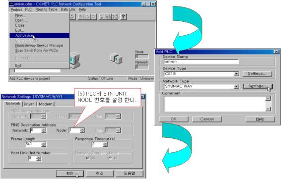 OMRON »ç¿¡¼ Á¦°øÇÏ´Â Cx-Programmer·Î PLC¿Í ÄÄÇ»ÅÍ »çÀÌÀÇ Network ¹øÈ£ ( ÇϳªÀÇ Ethernet ¿¡´Â 1 ~ 127 »çÀÌÀÇ ÇϳªÀÇ µ¿ÀÏÇÑ Network ¹øÈ£·Î ¼³Á¤ )¸¦ ¼³Á¤ÇÑ´Ù.