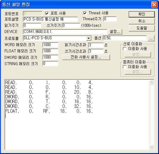 PORT : 0, STATION : 0, ADDRESS : 0003 Extra1 : R À̶ó°í ¼³Á¤ÇÏ°í ¾Æ³¯·Î±× Ãâ·ÂÀ» Çϸé 0¹ø PCDÀÇ R0003 ÀÇ DWORD °ªÀ» ¼³Á¤ÇÑ °ªÀ¸·Î º¯°æÇÒ ¼ö ÀÖ´Ù.