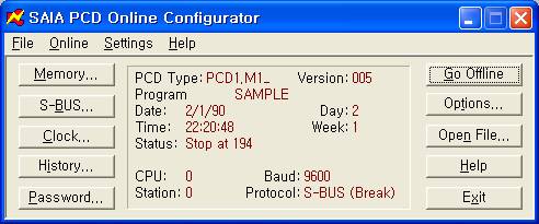 5) ¸¸¾à S-BUS ¹öÅÏÀÌ È°¼ºÈ µÇÁö ¾Ê¾ÒÀ» ¶§´Â ¡®Options¡¦¡¯ ¹öÅÏÀ» ´·¯¼ ÇöÀç ¼³Á¤µÈ Åë½ÅÆ÷Æ®, ¼Óµµ, ½ºÅ×ÀÌ¼Ç µîÀ» ¸Â°Ô ¼³Á¤ÇÑ ÈÄ ¡®Go Online¡¯ ¹öÅÏÀ» ´·¯ Online ½ÃÄÑ¾ß ÇÕ´Ï´Ù.