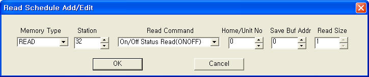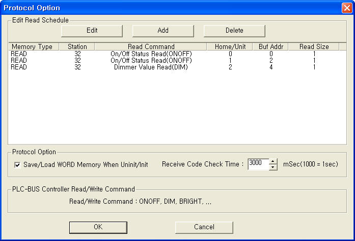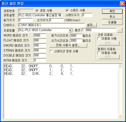 | <±×¸² 3> PLC-BUS Controller µå¶óÀ̹öÀÇ Åë½Å Àб⠼³Á¤ Ãß°¡/ÆíÁý ´ëÈ»óÀÚÀÇ ¿¹ |