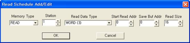 <±×¸² 3> PVZ108-MODBUS µå¶óÀ̹öÀÇ Åë½Å Àб⠼³Á¤ READ Ãß°¡/ÆíÁý ´ëÈ»óÀÚÀÇ ¿¹