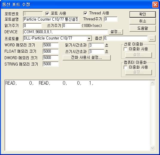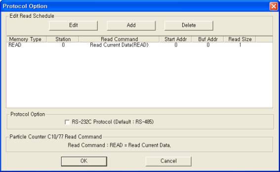 <±×¸² 3> Particle Counter C10/77 Åë½Å µå¶óÀ̹öÀÇ Àб⠼³Á¤ READ Ãß°¡/ÆíÁý ´ëÈ»óÀÚÀÇ ¿¹