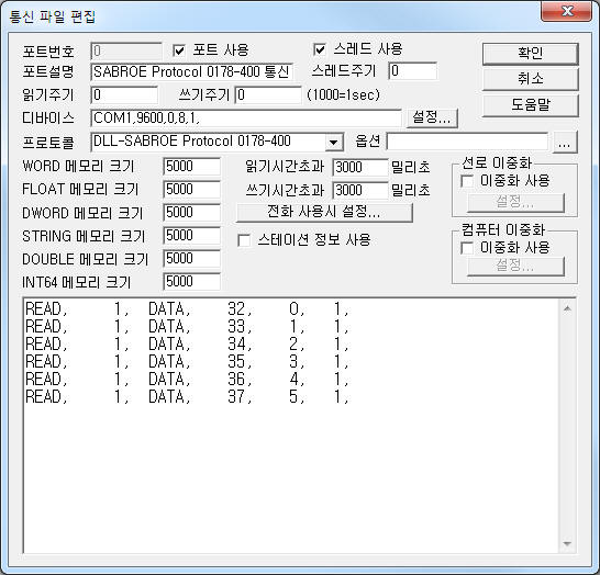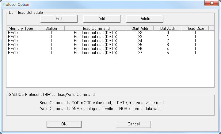 | <±×¸² 3> SABROE Protocol 0178-400 µå¶óÀ̹öÀÇ Åë½Å Àб⠼³Á¤ Ãß°¡/ÆíÁý ´ëÈ»óÀÚÀÇ ¿¹ |