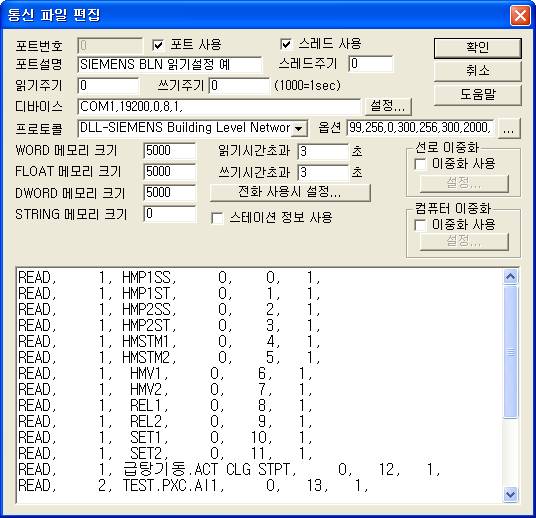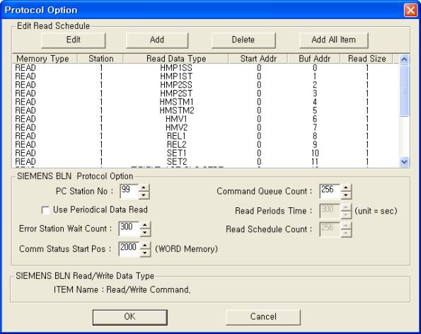 <±×¸² 3> SIEMENS Building Level Network Åë½Å µå¶óÀ̹öÀÇ Àб⠼³Á¤ READ Ãß°¡/ÆíÁý ´ëÈ»óÀÚÀÇ ¿¹