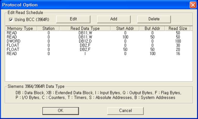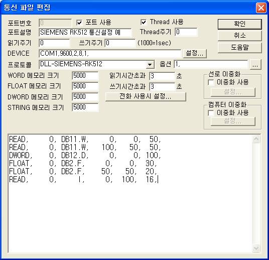 <±×¸² 3> SIEMENS RK512 µå¶óÀ̺êÀÇ Åë½Å Àб⠼³Á¤ READ Ãß°¡/ÆíÁý ´ëÈ»óÀÚÀÇ ¿¹