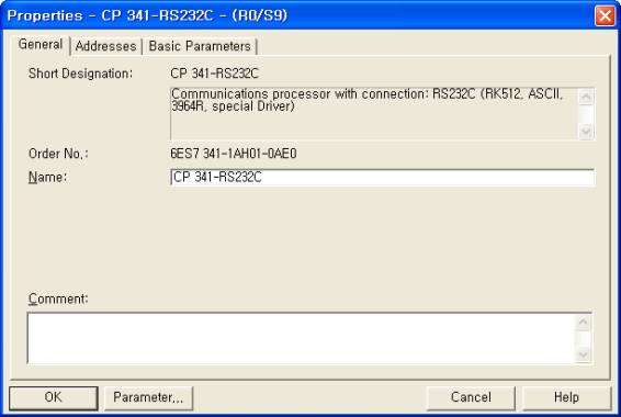<±×¸² 7> CP-341-RS-232C Åë½Å¸ðµâÀÇ ¼³Á¤ ´ëÈ»óÀÚ