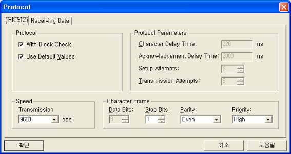 4) <±×¸² 8>¿¡¼ ÇÁ·ÎÅäÄÝ( Protocol ) Á¾·ù¸¦ RK512 ·Î ¼³Á¤ÇÑ´Ù. ( 3964R, RK512, ASCII Áß¿¡¼ )