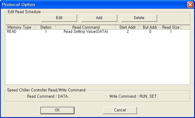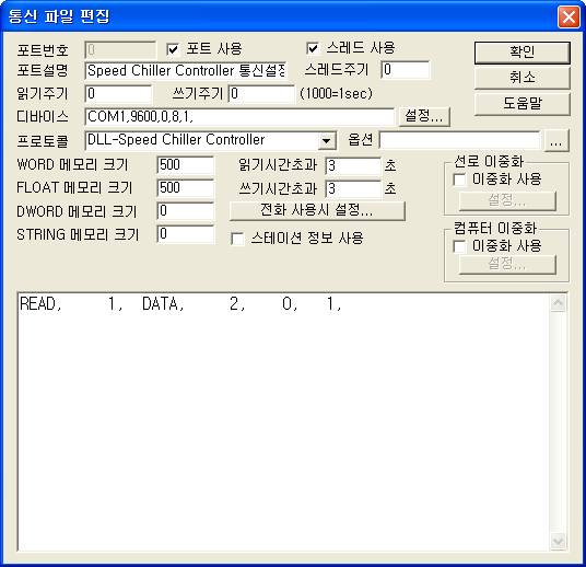 <±×¸² 3> Speed Chiller Controller µå¶óÀ̹öÀÇ Åë½Å Àб⠼³Á¤ Ãß°¡/ÆíÁý ´ëÈ»óÀÚÀÇ ¿¹