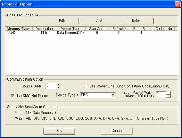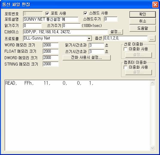 <±×¸² 4> Sunny Net Åë½Å µå¶óÀ̹öÀÇ Àб⠼³Á¤ READ Ãß°¡/ÆíÁý ´ëÈ»óÀÚÀÇ ¿¹
