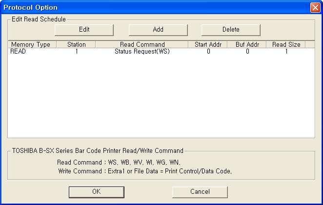 <±×¸² 3> TOSHIBA B-SX Bar Code Printer µå¶óÀ̹öÀÇ Åë½Å Àб⠼³Á¤ Ãß°¡/ÆíÁý ´ëÈ»óÀÚÀÇ ¿¹