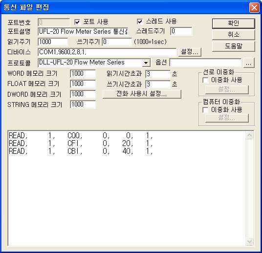 PORT : 0 STATION : 0 ADDRESS : 0000 EXTRA1 : FAOTYP EXTRA2 : 2 À¸·Î ¼³Á¤ÇÏ°í ¾Æ³¯·Î±× Ãâ·ÂÀ» Çϸé 0 ¹ø Æ÷Æ®¿¡ ¿¬°áµÈ UFL-20 Flow Meter Series ÀåºñÀÇ Selection of Analog Output Type During Flow Meter °ªÀ» ¼³Á¤(COMMU/HOLD ÀÏ ¶§)ÇÒ ¼ö ÀÖ´Ù. ( ´Ü ¼³Á¤ÀÎÀÚ 7°³ µ¥ÀÌÅÍ´Â ¡®ÀÛ¾÷µð·ºÅ丮\SCAN\data000_002.ini¡¯ ÆÄÀÏ¿¡ ÀԷµǾî ÀÖ¾î¾ß ÇÑ´Ù. )