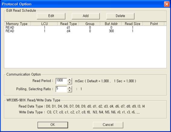 Áß¿ä) WR3385-891K Åë½Å µå¶óÀ̹ö´Â ¸ðµç Àб⸦ Çѹø¿¡ Åë½ÅÇÏ´Â ±¸Á¶·Î µÇ¾î ÀÖÀ¸¹Ç·Î Àб⠰£°ÝÀ» 1000 ~ 3000 mSec Á¤µµ ¼³Á¤Çϰí Polling ´ë Selecting ºñ´Â 5 ~ 20 Á¤µµ ¼³Á¤ÇØ ÁÖ¾î¾ß ÇÕ´Ï´Ù.