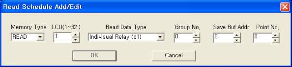 PORT : 0, STATION : 1, ADDRESS:0160, EXTRA1 : f8, EXTRA2 : 1 À̶ó°í ¼³Á¤Çϰí 5000 ÀÇ ¾Æ³¯·Î±× °ªÀ» Ãâ·ÂÇϸé WR3385ÀÇ 1¹ø LCU, 60¹ø Group, 1¹ø Point ±×·ì µ¥ÀÌÅ͸¦ ÀÐ¾î¼ WORD ¸Þ¸ð¸® 5000 ¹øÁöºÎÅÍ 256 (°³º°»óÅ µ¥ÀÌÅÍ) + 32 (Á¶±¤¼³Á¤ µ¥ÀÌÅÍ) + 32 (Áö¿¬¼³Á¤ µ¥ÀÌÅÍ) °³ ÀúÀåÇÑ´Ù.