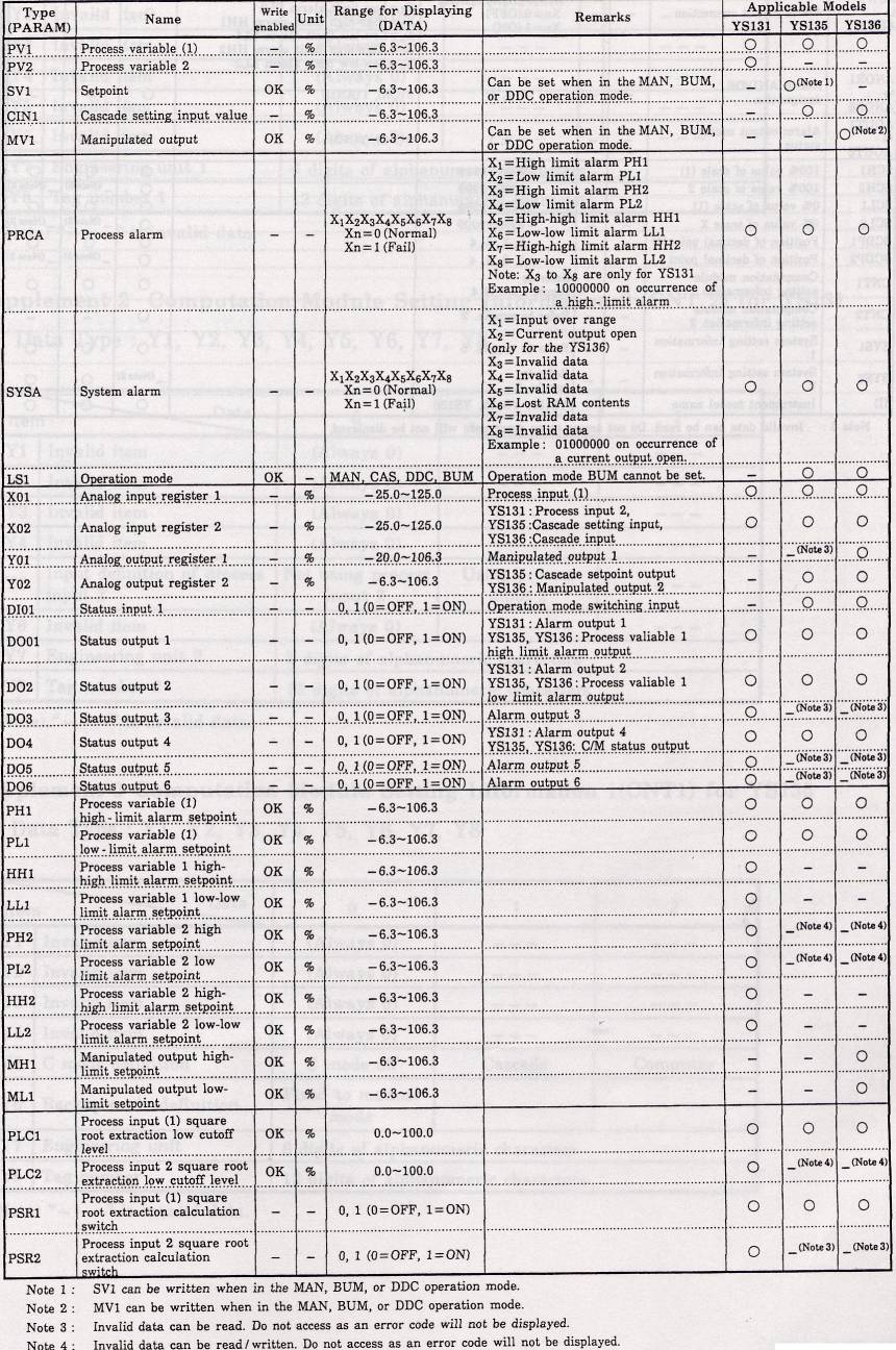 | LS1 | Action mode 1 | °¡´É | - | MAN = 0, AUT = 1, CAS = 2, SPC = 3, DDC = 4, BUM = 5, BUA = 6 |