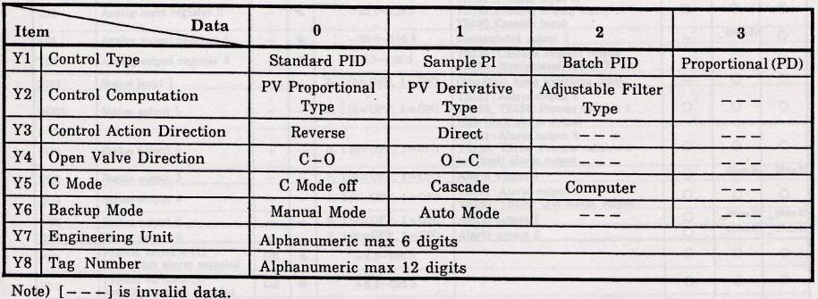 ÀúÀåÀ§Ä¡ 0 ~ 5 ¹øÁö : Control Type, Control Computation, Action Direction, Open Valve Direction, C Mode, Backup Mode,