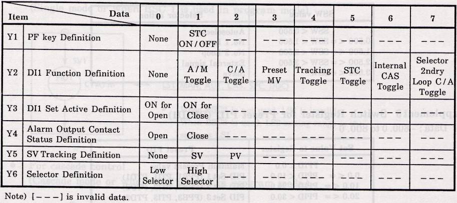 ÀúÀåÀ§Ä¡ 0 ~ 5 ¹øÁö : PF key, DI1 Function, DI1 Set Active, Alarm Output Contact Status, SV Tracking, Selector.