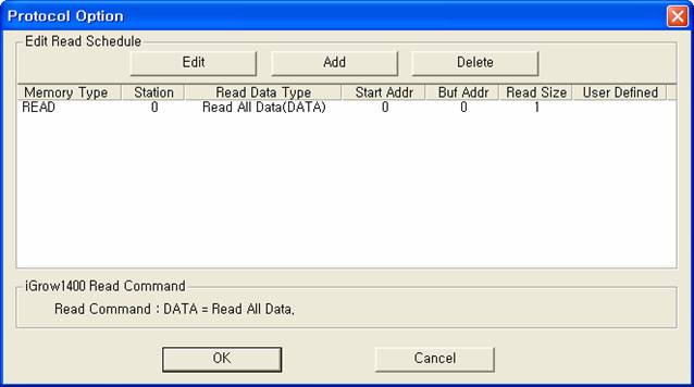 <±×¸² 4> iGrow 1400(Link4 Corp) µå¶óÀ̹öÀÇ Åë½Å Àб⠼³Á¤ READ Ãß°¡/ÆíÁý ´ëÈ»óÀÚÀÇ ¿¹