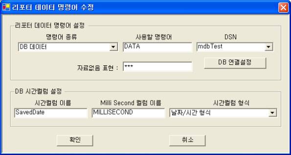 ÁÖÀÇ) ¸í·É¾î ¼³Á¤ ´ëÈ­»óÀÚÀÇ DSN,  ¹öư, DB ½Ã°£Ä÷³ À̸§, DB Milli Second Ä÷³ À̸§, ½Ã°£Ä÷³ Çü½Ä ÀÎÀÚ´Â DB °ü·Ã µ¥ÀÌÅÍ ÀÏ ¶§¸¸ ¼³Á¤ÇÑ´Ù.