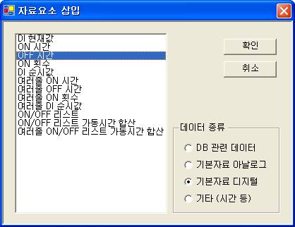 <±×¸² 1> ÀÚ·á¿ä¼Ò »ðÀÔ(ÀÔ·Â) ´ëÈ­»óÀÚ¿¡¼­ OFF ½Ã°£À» ¼±ÅÃÇÑ ¸ð½À