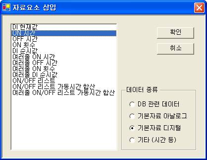 <±×¸² 1> ÀÚ·á¿ä¼Ò »ðÀÔ(ÀÔ·Â) ´ëÈ»óÀÚ¿¡¼ ON ½Ã°£À» ¼±ÅÃÇÑ ¸ð½À