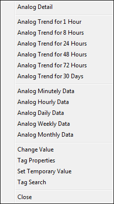 button or Analog Trend for 1 Hour ~ 30 Days of shortcut menu.