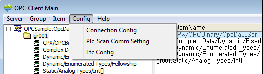 You can see the submenu such as <Figure 1>, when you choose the Config menu from OPC Client menu bar.