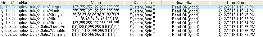 You can find this area at right upside of OPC Client Main. It is composed of Group/Item name, current Value, Data Type, Read Status and Time Stamp like <Figure 1>.