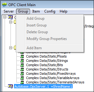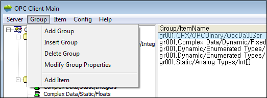 <Figure 1> Group menu at OPC Client Main menu bar