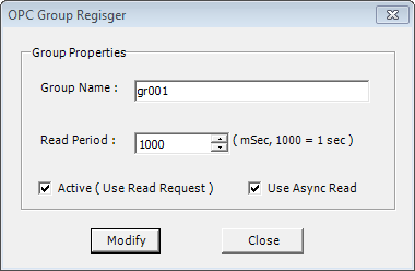 <Figure 1> OPC Group Register dialog box for Modify Group Properties