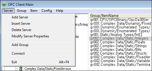 You can see the submenu at OPC Client Main such as <Figure 1>, by selecting the Server menu from menu bar.