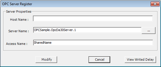 <Figure 1> OPC Server Register dialogbox for Modifying OPC Server