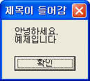 @MessageBox("¾È³çÇϼ¼¿ä.\n¿¹Á¦ÀÔ´Ï´Ù", "Á¦¸ñÀÌ µé¾î°¨", MB_OK);