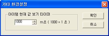 <±×¸² 1>ÀÇ ¾ÆÀÌÅÛ ÇöÀç °ª º¸±â ŸÀÌ¸Ó ÀÔ·Â ¿¡µðÅÍ¿¡ ÇöÀç °ª Ç¥½Ã ºÎ °»½Å½Ã°£À» 50 ~ 30000 mSec( 1000 = 1ÃÊ ) »çÀÌ·Î ÀÔ·ÂÇÑ´Ù.