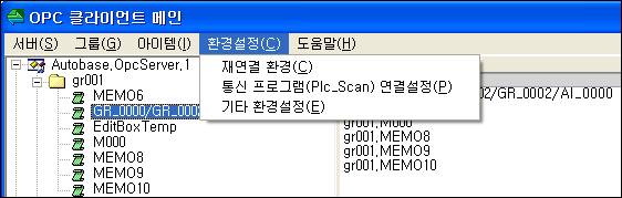 OPC Ŭ¶óÀÌ¾ðÆ® ¸ÞÀÎÀÇ È¯°æ¼³Á¤ ±ÛÀÚ¸Þ´º¸¦ ¼±ÅÃÇϸé <±×¸² 1>°ú °°Àº ºÎ ¸Þ´º°¡ ³ªÅ¸³´Ù.