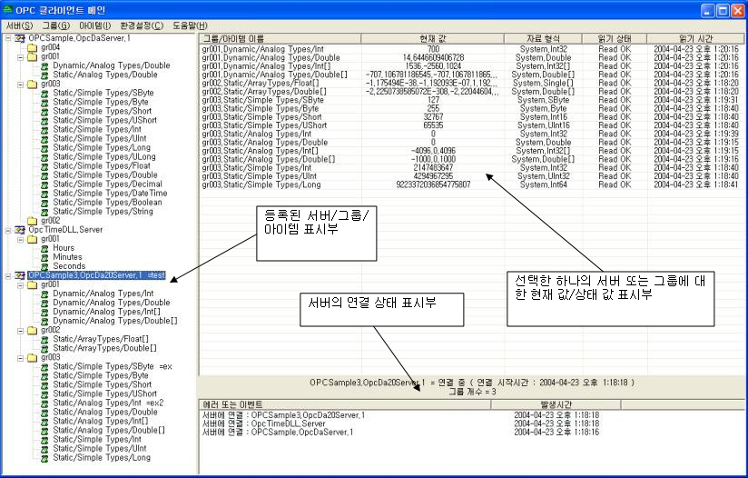OPC Ŭ¶óÀÌ¾ðÆ® ¸ÞÀÎ ÇÁ·Î±×·¥ ȸ鿡 Ç¥½ÃµÇ´Â ³»¿ëÀº ´ÙÀ½°ú °°Àº ¿µ¿ªÀ¸·Î ±¸ºÐÇÒ ¼ö ÀÖ´Ù. ( <±×¸² 1> ÂüÁ¶ )