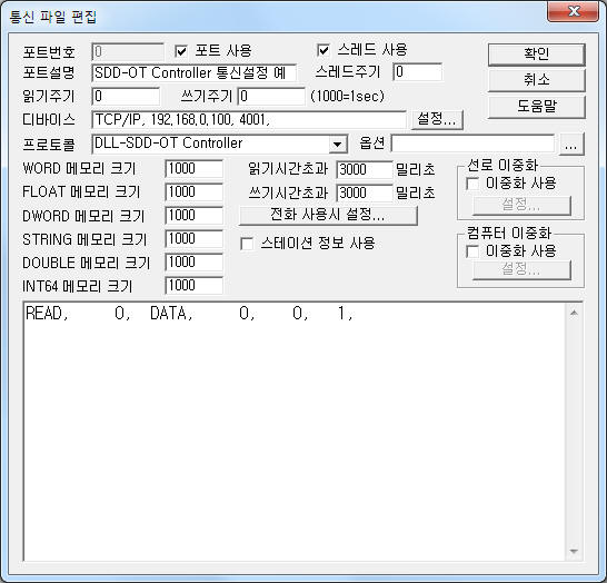 | <±×¸² 3> SDD-OT Controller µå¶óÀ̹öÀÇ Åë½Å Àб⠼³Á¤ Ãß°¡/ÆíÁý ´ëÈ»óÀÚÀÇ ¿¹ |
